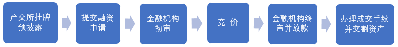(1)融資方提交融資申請(qǐng):融資方向產(chǎn)交所提交融資申請(qǐng)并提交資料,產(chǎn)交所協(xié)助其制定融資方案并聯(lián)系相關(guān)金融機(jī)構(gòu)。
