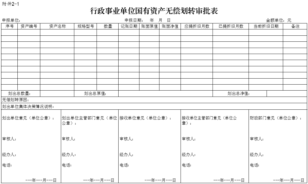 2.《行政事業(yè)單位國(guó)有資產(chǎn)無(wú)償劃轉(zhuǎn)審批表》;